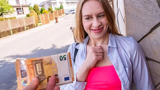 Busty redhead Skye Mae fucks her friend's dad for a chance to go to Europe