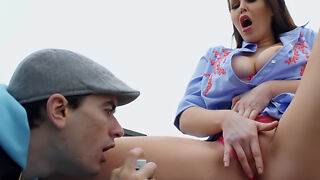 Bubble butt brunette Nicole Aria fucks married boss on her last day of work!