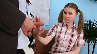 TrickyOldTeacher - College babe sucks teachers cock to better grade and fucks him good