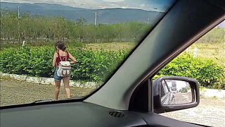 I FIND A SEXY SKINNY hitchhiker WALKING ON THE ROAD AND FUCK HER IN EXCHANGE FOR A LIFT