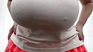 Granny Sallys huge dangly tits get very wet under her skimpy top
