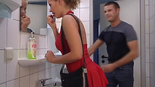 Lady in Red gets her ass fucked in Toilet. Swallow