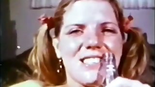 Vintage pigtails Teen fucking Bottle and 70s afro guy